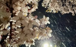 12일 저녁 서울 종로구의 한 거리에 벚꽃 위로 눈이 내리고 있다. 연합뉴스 지난 밤사이 서울에 4월 중순(11~20일) 기준으로는 처음으로 눈이 내려 쌓였다. 기상 기록(1907년)이 시작된 후 118년 만이다. 하룻밤 사이 20도를 웃도는 완연한 봄에…