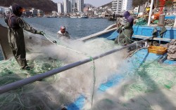 부산지방 낮 최고기온이 20도의 포근한 봄 날씨를 보인 23일 부산 대변항 부두에서 어민들이 봄 조업을 앞두고 그물을 수리하는 등 출어준비를 하고 있다.