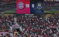 10-0으로 벌어진 바이에른 뮌헨-오클랜드시티 전 스코어를 보여주는 전광판. [AP=연합뉴스] 0-10. 오클랜드시티(뉴질랜드)는 16일(한국시간) 조별리그 C조 1차전에서 바이에른 뮌헨(독일)에 하릴없이 무너졌다. 슈팅 수 1대31, 볼 점유율(%) 2…
