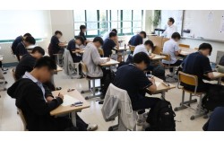 지난해 모의평가가 치러진 6월 4일 서울 용산구 용산고등학교에서 3학년 수험생들이 1교시 국어 영역 시험 답안지를 작성하고 있다. 뉴스1 오는 6월 3일로 예정됐던 수능 모의평가(모평) 시행일이 대통령선거와 겹치면서 하루 뒤인 4일로 미뤄진다. 교육부는 8일…