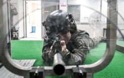 육군이 4일 과학화 예비군훈련 현장을 공개했다. 서울 육군 52보병사단 서초 과학화예비군훈련장에서 진행한 예비군훈련 중 참가 인원들이 안전을 위한 사선별 방탄아크릴을 앞에 두고 실내사격을 하는 모습(위 사진). 이 외에도 3면 멀티스크린이 적용된 VR 영상모의 사격훈련…