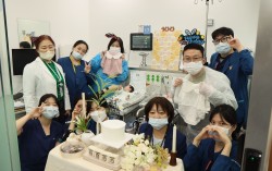 초극소 저체중아 쌍둥이 자매의 100일을 맞아 일산차병원 신생아집중치료실 의료진과 부모가 함께 기념 촬영을 하고 있다. 사진 일산차병원 차의과대 일산차병원은 임신 24주 5일 만에 각각 체중 680g과 720g으로 태어난 '초극소 저체중아' 쌍둥이 자매 …
