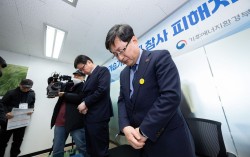 김성환 기후부 장관이 지난달 25일 가습기살균제 피해자 간담회에서 묵념하고 있다. [뉴스1] 박창연(59)씨는 2007년 근무 중 갑자기 호흡 곤란을 겪고 응급실에 갔다. 중환자실 등을 거쳐 10일간 입원한 그는 급성 천식 진단을 받았다. 2년 전부터 가…