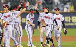 지난 12일 잠실 두산전에서 승리한 뒤 하이파이브하는 LG 선수들. 올 시즌 초반 압도적 1위로 나선 LG는 15일부터 삼성과 SSG를 잇달아 만나 독주 시험대에 선다. [사진 LG 트윈스] 올 시즌 프로야구 선두권 경쟁의 초반 판세를 가늠할 승부가 온다…
