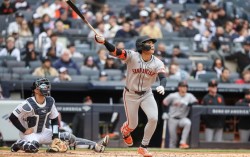 14일(한국시간) 양키스전에서 홈런을 치고 타구를 바라보는 이정후. 그는 이날 ‘좌타자 킬러’로 돈을 상대로 첫 연타석 홈런을 날려 내셔널리그 OPS 1위로 나섰다. [로이터=연합뉴스] 샌프란시스코 자이언츠 이정후(27)가 연타석 홈런을 터트리며 내셔널리…