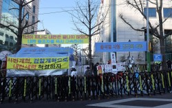내란 우두머리 혐의로 기소된 윤석열 전 대통령의 1심 선고가 열리는 19일 서울중앙지법 일대에서 유죄 촉구 집회가 열리고 있다. 연합뉴스 12·3 비상계엄과 관련해 내란 우두머리 혐의로 기소된 윤석열 전 대통령의 1심 선고가 19일 오후 나오는 가운데 …