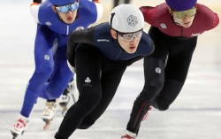 임종언 준결승 역주 (서울=연합뉴스) 김성민 기자 = 13일 서울 목동 아이스링크에서 열린 2025-2026시즌 쇼트트랙 국가대표 2차 선발전. 남자부 1000m 준결승에서 노원고 임종언(오른쪽 두번째)이 역주하고 있다. 2025.4.13 ksm7976@yna.…