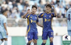 대구전 결승골을 합작한 직후 함께 인사하는 강상우(왼쪽)와 이청용. [사진 프로축구연맹] 프로축구 디펜딩 챔피언 울산HD가 5경기 만에 승리하며 선두 싸움에 재진입했다. 울산은 13일 대구iM뱅크파크에서 열린 2025시즌 K리그1 원정경기에서 대구F…