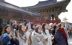 지난 2일 전남 구례군 화엄사를 찾은 외국인 유학생들. 이들은 전남관광재단 주관의 '주한 외국인 유학생 체험 팸투어 프로그램'에 참여해 1박 2일간 전남 구례와 경북 하동 등 섬진강 일대를 여행했다. 박상문 기자 “학업 스트레스는 잊고 멋진 기와집과 온돌에 푹 빠졌습…
