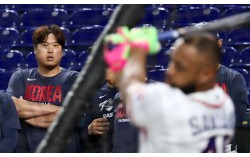 도미니카공화국과 월드베이스볼클래식(WBC) 준준결승 경기를 앞둔 한국 야구대표팀의 류현진이 12일(현지시간) 미국 플로리다주 마이애미 론디포파크에서 타격 연습 중인 도미니카의 산타나를 지켜보고 있다. 연합뉴스 류현진(39·한화 이글스)이 2026 월드베이스볼클래식…