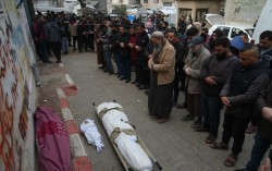 4일(현지시간) 가자지구 시파 병원에서 팔레스타인 사람들이 이스라엘군의 공격으로 사망한 이들을 추모하고 있다. AP=연합뉴스 휴전 중인 가자지구에서 이스라엘군의 공습과 포격으로 18명의 사망자가 발생하는 참사가 벌어졌다. 이스라엘은 무장대원의 선제공격에 따른 대응…