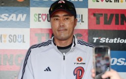"두산 베어스를 상징하는 '허슬(Hustle) 두'의 의미를 알지 못한다면, 이 유니폼을 입을 자격이 없다." 3일 잠실 KIA전에 앞서 인터뷰하는 조성환 두산 감독대행. 뉴스13일 잠실 KIA전에서 경기를 지켜보는 조성환 두산 감독대행. 뉴스1 프로야구…