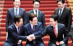 이재명 대통령과 정청래 더불어민주당 대표, 장동혁 국민의힘 대표가 중동발 경제 위기 속 7개월 만에 회동했다. 이 대통령과 정 대표, 장 대표가 함께 만난 것은 작년 9월 8일 이후 211일 만이다. 이 대통령은 7일 청와대 본관에서 여야 지도부가 참석한 가운데 …
