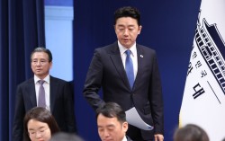 강훈식 대통령비서실장이 이재명 대통령의 전략경제협력 특사 자격으로 중동 국가들과 원유·나프타 수급을 협의하기 위해 7일 오후 출국한다. 7일 청와대 춘추관 대브리핑룸에서 중동관련 기자간담회가 열렸다. 강훈식 비서실장과 김용범 정책실장이 들어서고 있다. [청와대사진기자단…