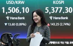 3일 서울 중구 하나은행 딜링룸에 코스피 지수 종가와 원달러 환율 시황이 표시되고 있다. 이날 코스피는 전 거래일대비 143.25포인트(2.74%) 오른 5377.30, 코스닥 지수는 전 거래일대비 7.41포인트(0.70%) 상승한 1063.75에 거래를 마쳤다. 뉴스…