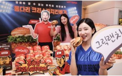 김경록 기자 6일 오전 서울 용산구 롯데리아 숙대입구역점에서 모델들이 신메뉴 '통다리살크리스피치킨버거' 2종을 소개하고 있다. 이번 신제품은 통다리살을 활용한 치킨 패티로 입안 촉촉함과 버터밀크와 쌀가루를 더해 최상의 바삭함이 특징이다. 그릭랜치, 파이어…
