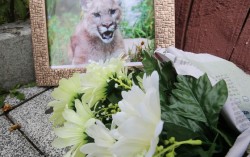 지난 2018년 9월 20일 대전 오월드 입구에 퓨마 뽀롱이를 추모하는 조화와 사진, 메모지가 놓여있다. 연합뉴스 8일 대전 오월드 동물원(주랜드) 우리에서 탈출한 늑대 ‘늑구’를 계기로 과거 다른 동물원과 생태체험시설에서 반복된 동물 탈출 사고가 다시 …