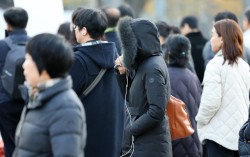 서울 종로구 광화문네거리에서 두터운 옷차림의 시민들이 발걸음을 옮기고 있다. 뉴스1 월요일인 15일 아침 기온이 0도 아래로 떨어지고 강한 바람이 불며 춥겠다. 기상청은 이날 북서쪽에서 찬 공기가 내려오며 전국 대부분 지역의 아침 기온이 0도 이하로…
