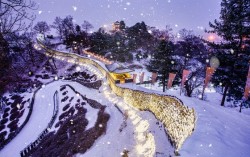 청주국제공항에서 백제 고도인 충남 공주와 부여까지 한 번에 오갈 수 있는 투어버스가 운행을 시작했다. 눈 내린 충남 공주의 공산성 야경. 지난 10일 청주국제공항과 공주-부여를 연결하는 C-투어버스가 공식 개통하면서 외국인 관광객의 이동이 편의가 개선됐다. [사진 충남…