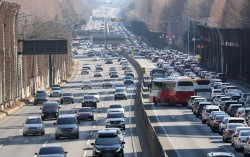 설날 당일인 17일 오후 서울 서초구 잠원IC 인근 경부고속도로 상행선(왼쪽)·하행선 방향 차량들이 서행하고 있다. 뉴스1 설 연휴 마지막 날인 18일 귀경 차량이 몰리면서 서울 방향 고속도로 곳곳에서 정체가 이어지고 있다. 오후 3~4시쯤 정체가 절정에…