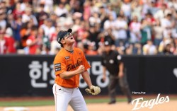 프로 3년차에 마무리 투수 보직을 맡은 김서현은 최고 시속 160.5㎞에 이르는 강속구와 위력적인 변화구를 적절히 섞어 던지며 지난 20일까지 14세이브를 쌓아 올려 소속팀 한화의 상위권 질주에 힘을 보태고 있다. [연합뉴스] 프로야구 한화 이글스 투수 …