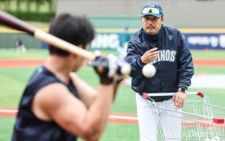NC 이호준 감독이 21일 울산 한화전을 앞두고 타자들에게 공을 던져주고 있다. 사진 NC 다이노스 아직은 포근하고 안락한 ‘내 집’ 느낌은 아니다. 그래도 떠돌이 생활을 더는 하지 않아도 된다는 안도감이 선수들을 똘똘 뭉치게 한다. 최근 임시 홈구장으로…