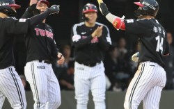 만루홈런치고 축하받는 LG 송찬의 (부산=연합뉴스) 강선배 기자 = 20일 부산 사직야구장에서 열린 프로야구 2025 신한 SOL 뱅크 KBO리그 LG 트윈스와 롯데 자이언츠의 경기. 2회 초 무사 만루에서 LG 송찬의가 좌측 펜스를 넘어가는 만루홈런을 치고 동료들…