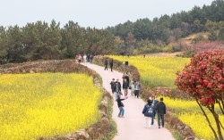 전남 완도군 청산도 내 슬로길걷기 축제장을 찾은 관광객들이 유채꽃 사이를 거닐고 있다. [사진 완도군] 영화 ‘서편제’와 드라마 ‘봄의 왈츠’ 촬영지인 전남 완도군 청산도(靑山島)에서 4월 한 달간 ‘슬로걷기축제’가 열린다. 청산도는 2007년 12월 아…