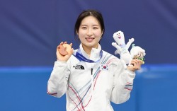 쇼트트랙 김길리가 16일(현지시간) 이탈리아 밀라노 아이스스케이팅 아레나에서 열린 2026 밀라노 코르티나담페초 동계올림픽 쇼트트랙 여자 1000m 시상식에서 동메달을 들어보이고 있다. 김종호 기자 이재명 대통령이 2026 밀라노·코르티나담페초 동계올림…