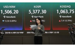 3일 서울 중구 하나은행 본점 딜링룸 현황판에 원/달러 환율, 코스피, 코스닥 지수가 표시돼 있다. 이날 코스피는 전 거래일 대비 143.25p(2.74%) 오른 5,377.30으로, 코스닥 지수는 전장보다 7.41p(0.70%) 오른 1,063.75로 마감했다. …
