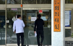 정부의 의대 정원에 반발한 학생들의 집단 휴학으로 그간 수업 일정을 미뤄온 전북대 의대가 2024년 4월 8일 수업을 재개한 가운데 학교 관계자 등이 의대 건물 안으로 들어가고 있다. 김성태 객원기자 전북대 “자료 미비 탓” 이의 제기 지역의사제로 내년부터 …