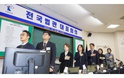 8일 오전 경기 고양시 사법연수원에서 열린 2025년 하반기 전국법관대표회의 정기회의에서 참석자들이 국기에 경례하고 있다. 뉴스1 전국법관대표회의는 8일 더불어민주당이 추진 중인 내란전담재판부 설치와 법왜곡죄 신설에 대해 "위헌성에 대한 논란과 함께 재판…