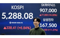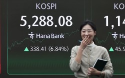 3일 코스피가 하루 만에 급락장에서 급등장으로 방향을 틀며 사상 최고가로 마감했다. 3일 서울 중구 우리은행 본점 딜링룸 전광판에 종가가 표시되고 있다. 뉴스1 이날 한국거래소에 따르면 이날 코스피는 전날보다 338.41포인트(6.84%) 오른 5288.08에 마…