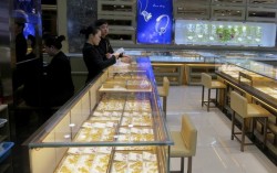 중국 남부 선전시의 한 황금매장에서 점원들이 상품을 정리하고 있다. 로이터 중국이 13개월 연속으로 황금 보유량을 늘리면서 외화보유액 대비 황금 비중이 사상 처음으로 9%대에 진입했다. 중국 증권시보는 8일 올해 들어 국제 금 가격이 50회 이상 사상 …