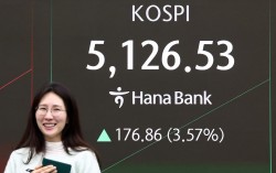 코스피가 장중 5000선을 회복한 3일 오전 서울 중구 하나은행 본점 딜링룸 전광판에 증시 현황이 표시되어 있다. 뉴스1 ‘워시 쇼크’ 여파로 5% 넘게 급락했던 코스피 지수가 하루 만에 5100선을 회복했다. 3일 코스피는 장 초반 급등세에 매수 사이드카(프로그…