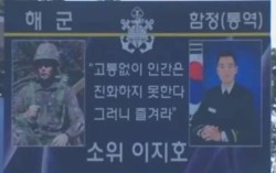 지난달 28일 해군사관후보생 임관식에서 공개된 이재용 삼성전자 회장의 장남 이지호씨의 좌우명. 온라인 커뮤니티 캡처 이재용 삼성전자 회장의 장남 이지호(24)씨가 지난달 해군 통역장교로 정식 임관식을 마친 가운데, 이날 행사에서 전광판에 공개된 이씨의 좌…