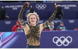 (밀라노=뉴스1) 김성진 기자 = 미국 피겨 선수 일리야 말리닌이 10일(현지시간) 이탈리아 밀라노 아이스 스케이팅 아레나에서 열린 2026 밀라노·코르티나담페초 동계올림픽 피겨스케이팅 남자 싱글 쇼트 프로그램에서 연기를 마친 후 관중석을 향해 인사하고 있다. 2026…
