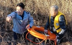 경기 화성동탄경찰서 동탄2지구대 박대희(40) 경장이 동탄2신도시 내 공원 연못에 빠진 70대 노인을 구조하고 있다. 사진 독자 처음 물에 들어갔을 땐 추운 줄도 몰랐어요, 빨리 꺼내드려야겠단 생각뿐이었습니다. 늦깎이 5년 차 경기도 화성 동탄2지구대 소속…