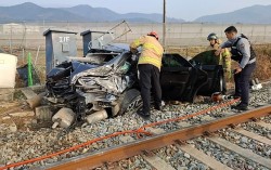7일 오전 9시 35분쯤 전남 보성군 조성면의 한 철길 건널목에서 60대 남성이 몰던 승용차가 새마을호 열차와 충돌했다. 사진 전남소방본부 7일 오전 9시 35분쯤 전남 보성군 조성면 한 철길 건널목에서 새마을호 1088호와 승용차가 충돌했다. 이 사고로 승…