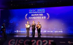 왼쪽부터 광운대학교 산학협력단 정영욱 단장, 지식재산처 김정균 국장, 한국전자통신연구원(ETRI) 조경현 광운대학교(총장 윤도영)가 지식재산처가 주관하는 ‘GISC 2025 표준특허 창출 우수기관’에 선정되어 11월 6일(목) 지식재산처장 표창을 수상했다…