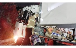 13일 오전 5시43분쯤 경기 화성시 비봉면 서해안고속도로 서울 방향에서 발생한 추돌 사고 현장. 사진 경기소방본부 고속도로 추돌 사고로 인해 발이 묶인 수험생이 레커차와 경찰의 도움으로 무사히 시험장에 도착했다. 13일 경기남부경찰청 교통과에 따르…