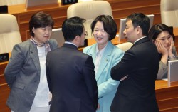 추미애 법사위원장을 비롯한 법사위원들이 20일 서울 여의도 국회에서 열린 제433회국회(임시회) 제2차 본회의에서 대화하고 있다. 뉴스1 검찰청 폐지의 후속 조치인 공소청 설치법안이 20일 국회 본회의를 통과했다. 국회는 이날 오후 본회의에서 공소청 설치법을…