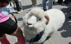 지난 2일 오후 서울 서대문구 연세대에 나타난 양 '하양이'. 곽주영 기자 “음메. 음메에!” 지난 2일 낮 서울 서대문구 연세대 신촌캠퍼스. 학교 점퍼를 입는 학생들 100여명이 모여 있는 캠퍼스에서 난데 없는 동물 울음소리가 들렸다. 동그랗게 둘…