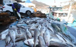 바다 수온 상승과 이상 기온, 집중호우 등 기후 변화 영향으로 지역 특산물이 자취를 감추면서 이들 특산물을 앞세운 지역 대표 축제가 차질을 빚고 있다. 2014년 12월 경남 거제시 장목면 외포항에 어민들이 갓잡은 대구를 위판장에 출하하고 있다. 중앙포토 ‘대구 없는…