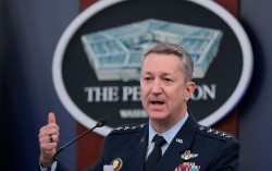 댄 케인 미국 합참의장이 19일(현지시간) 미 국방부(전쟁부) 청사에서 기자회견을 하고 있다. 로이터=연합뉴스 댄 케인 미국 합참의장이 A-10 공격기로 호르무즈 해협의 이란 고속 공격정을 공격하고 있다고 밝혔다. 케인 의장은 19일(현지시간) 국방부(전…