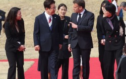 이재명 대통령과 에마뉘엘 마크롱 프랑스 대통령이 3일 청와대에서 열린 한·프랑스 확대 정상회담에서 기념 촬영을 하고 있다. 뉴스1 이재명 대통령과 에마뉘엘 마크롱 프랑스 대통령이 3일 청와대에서 한·불 정상회담을 하고 중동 전쟁의 여파로 인한 경제·에너지 위기 등…