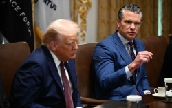 지난달 26일(현지시간) 미국 워싱턴 DC 백악관 내각 회의에서 도널드 트럼프 대통령(왼쪽)이 지켜보는 가운데 피트 헤그세스 미국 국방장관이 연설하고 있다. AFP=연합뉴스 도널드 트럼프 미국 대통령이 5일(현지시간) 국방부(Department of De…
