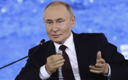 블라디미르 푸틴 러시아 대통령이 5일(현지시간) 러시아 블라디보스토크에서 열린 동방경제포럼 총회에서 연설하고 있다. AP=연합뉴스 블라디미르 푸틴 러시아 대통령이 북극과 극동을 잇는 초대형 물류 프로젝트, 이른바 ‘북극 횡단 운송 회랑’ 개발 구상을 공식…