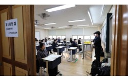 2026학년도 대학수학능력시험(수능)이 실시된 13일 오전 인천 미추홀구 인화여자고등학교에서 수험생들이 시험 시작을 기다리고 있다. 연합뉴스 13일 시행된 2026학년도 대학수학능력시험(수능)의 수험생 필적 확인 문구는 ‘초록 물결이 톡톡 튀는 젊음처럼’…