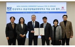 왼쪽부터) 김기홍 한성대 문학문화콘텐츠학과 교수, 초이질수렌 델게르체체그(Choijilsuren Delgertsetseg) 몽골국립문화예술대학 인문언어학과 교수, 이창원 한성대 총장, 친바트 바트에르덴(CHINBAT. BAT-ERDENE) 몽골국립문화예술대학 총장, 김…